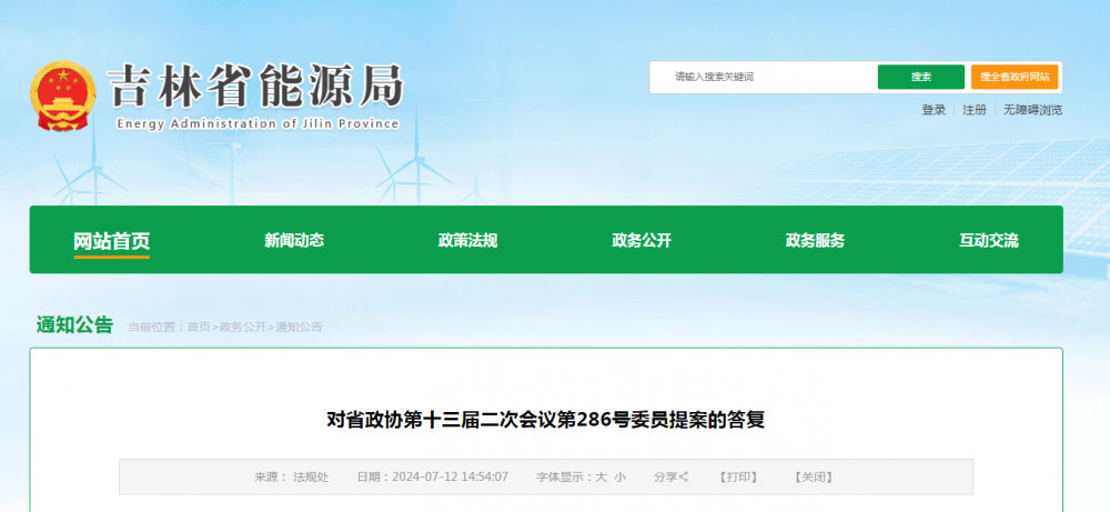 近日,吉林省能源局公布对省政协第十三届二次会议第286号委员提案的答复。