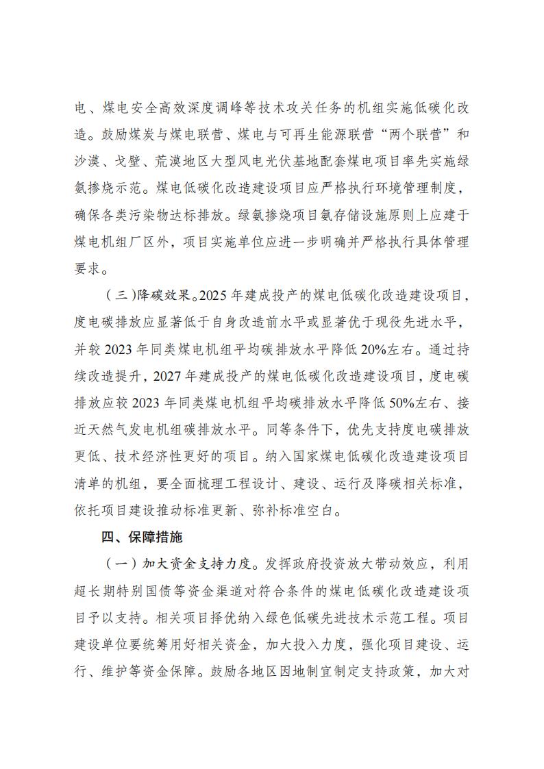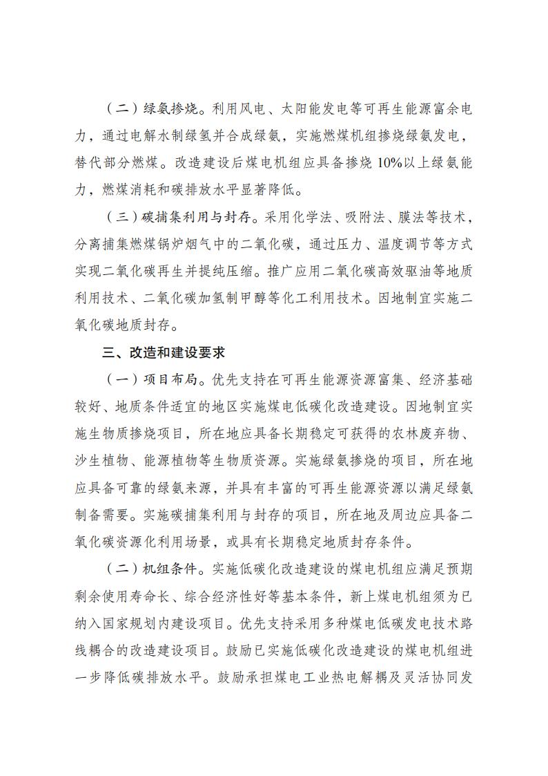 2、改造建设后煤电机组应具备掺烧10%以上绿氨能力,燃煤消耗和碳排放水平显著降低。
