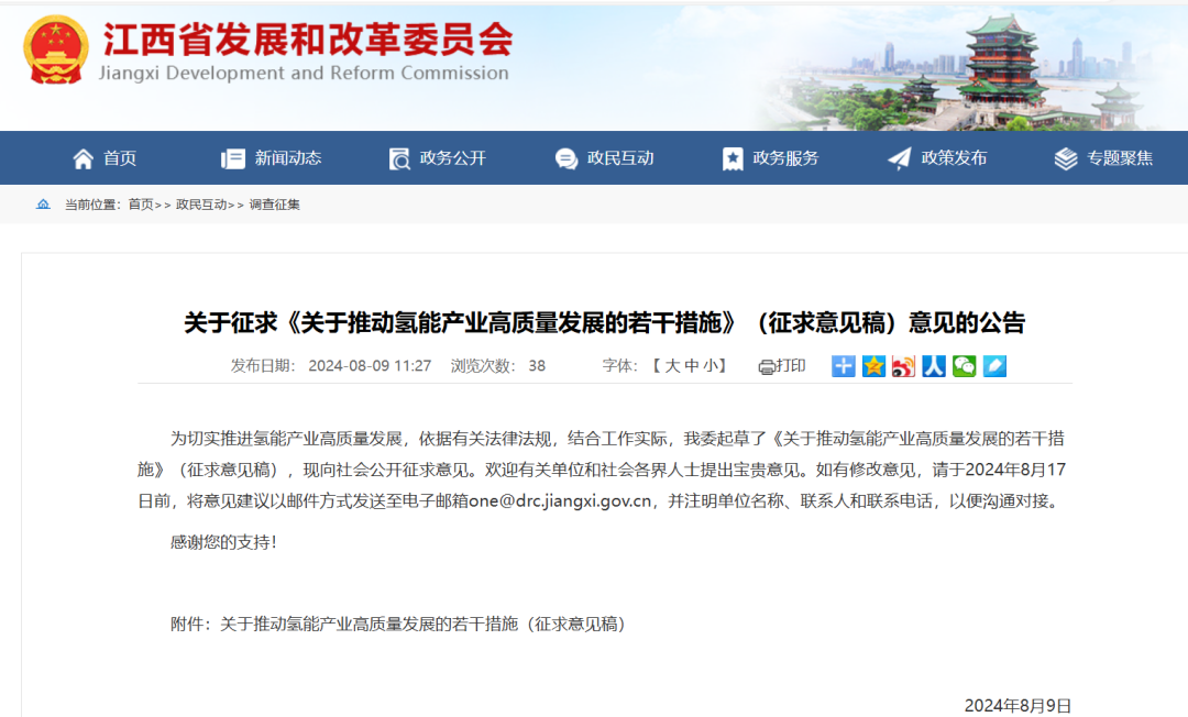 8月9日,江西省发改委公布《》。