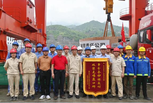 26日上午,现场各单位立即投入到吊装前的准备工作中。攀水电公司全程跟进机电安装进展,逐一确认安装条件;施工单位技术人员按吊装方案全面落实安全交底与技术措施,确保万无一失;在各项准备工作全面就绪的基础上,6号机组的转子支架平稳、精准吊装就位。川投能源副总经理、攀水电公司党总支书记、董事长徐孝刚现场督导吊装工作,充分肯定了哈电公司在本次极端条件下的运输成绩,并向哈尔滨电机厂有限责任公司授予锦旗,感谢其长期以来对银江水电站建设的大力支持。