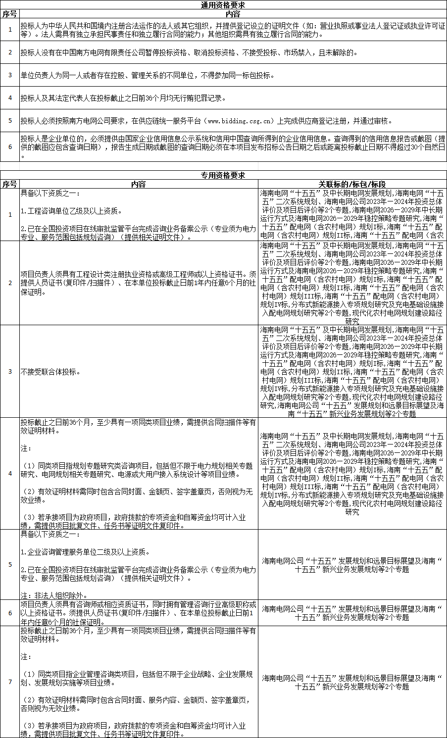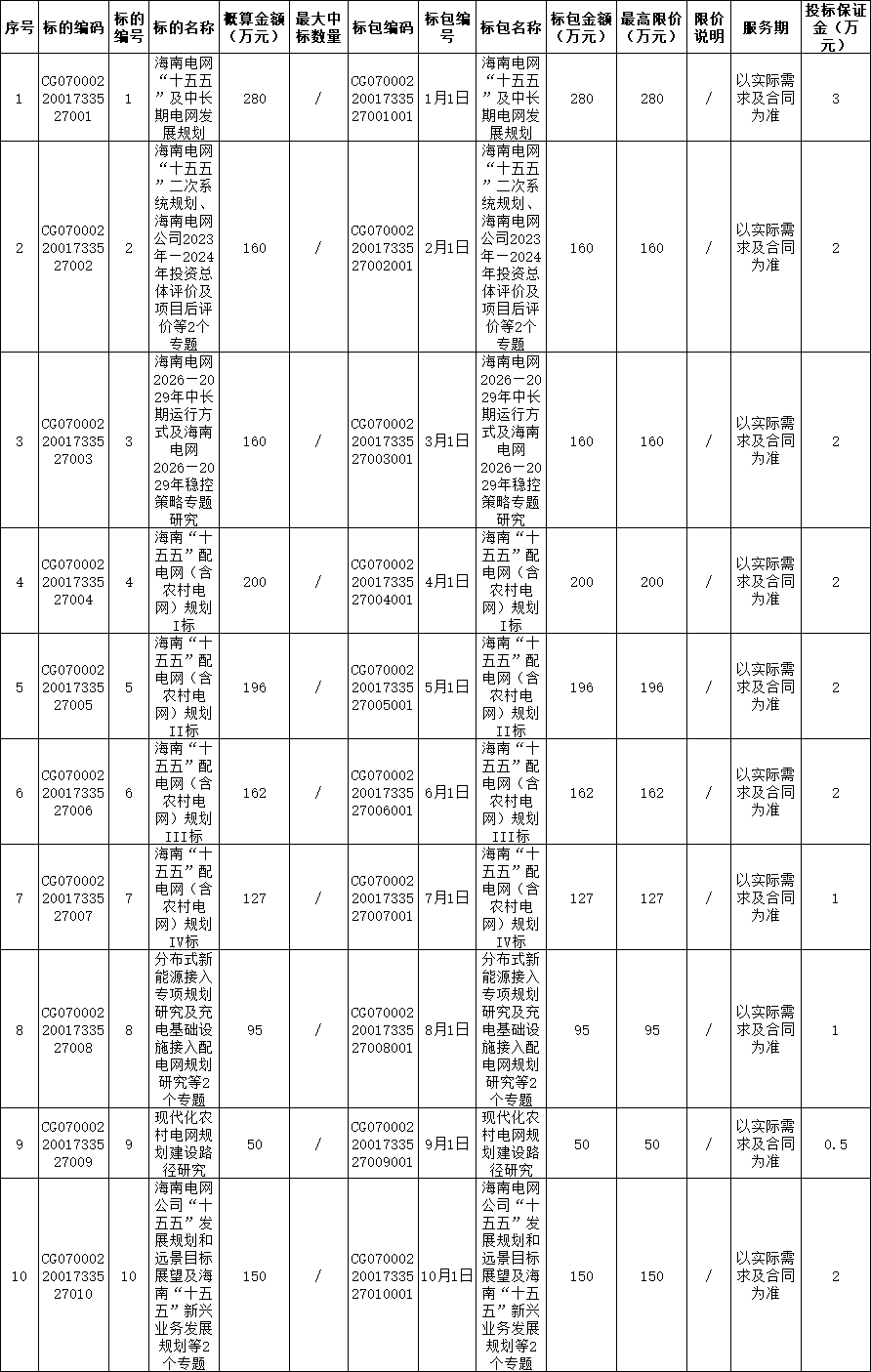 2.1项目概述:对海南电网有限责任公司十五五及中长期电网发展规划、十五五配电网规划等专题研究项目进行招标,共计10个标的招标。